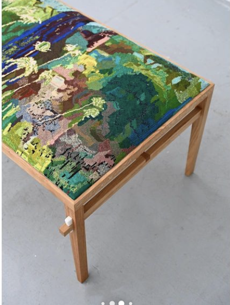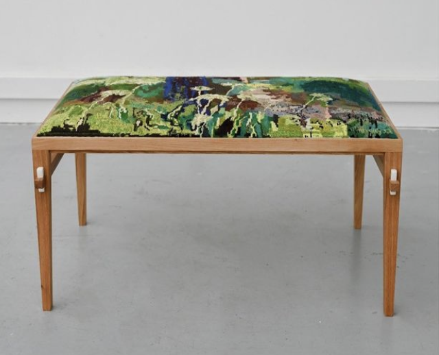 Banquette à l’arbre rose, 2023 broderie: coton faite à la main points de croix